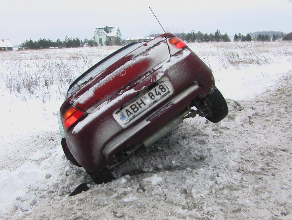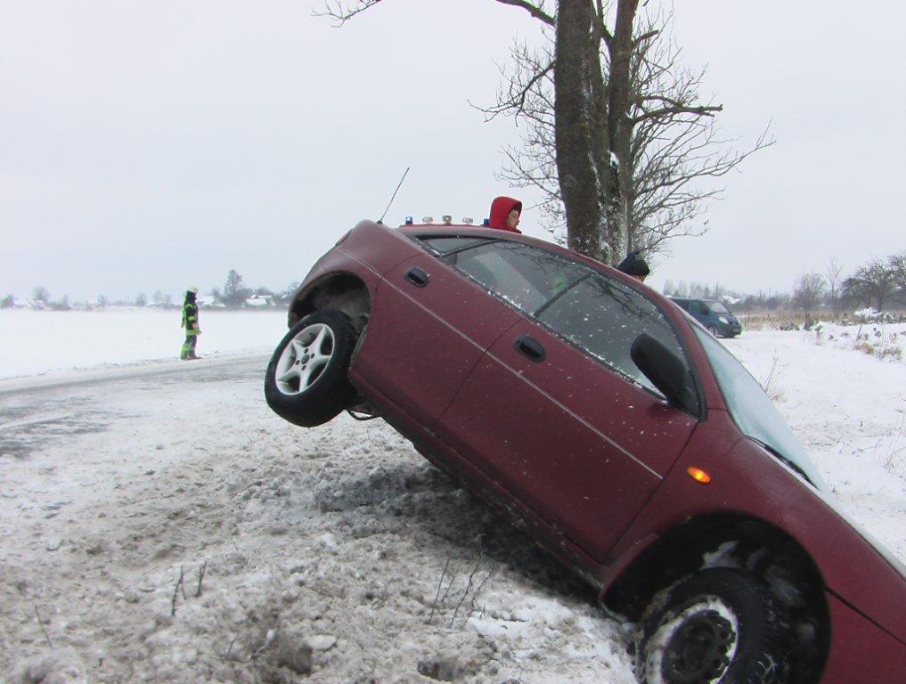 Dėl sniego liežuvių du automobiliai nulėkė nuo kelio