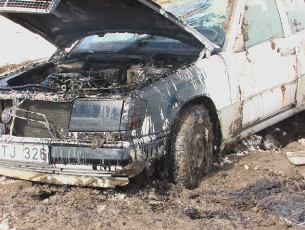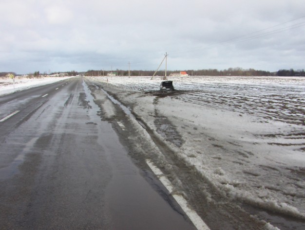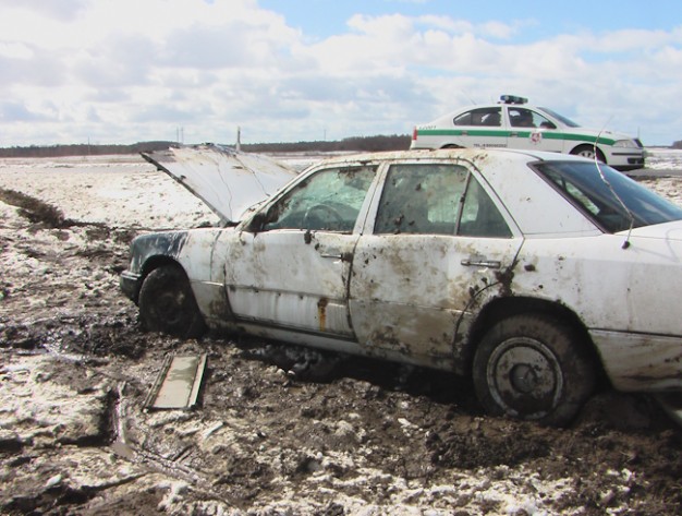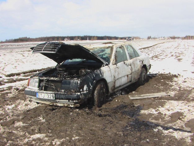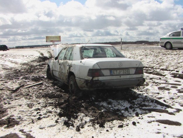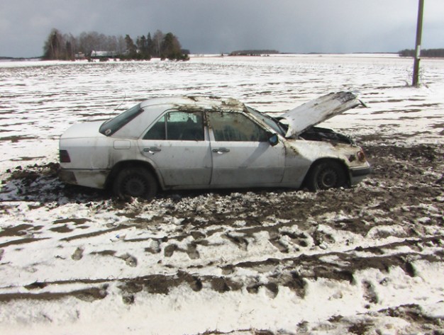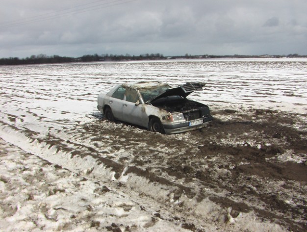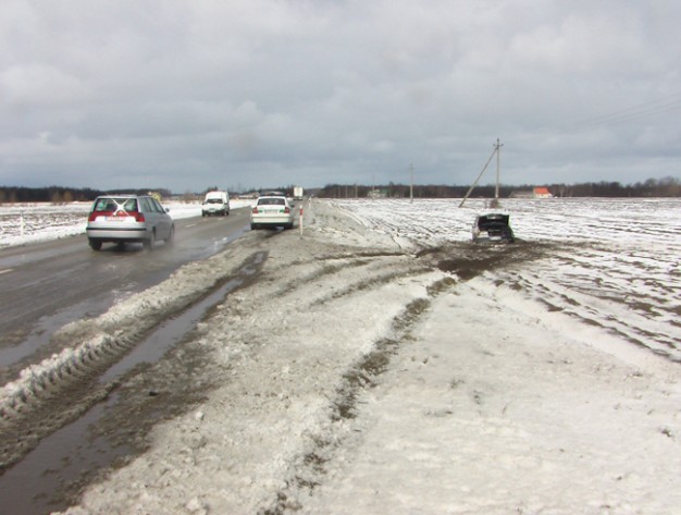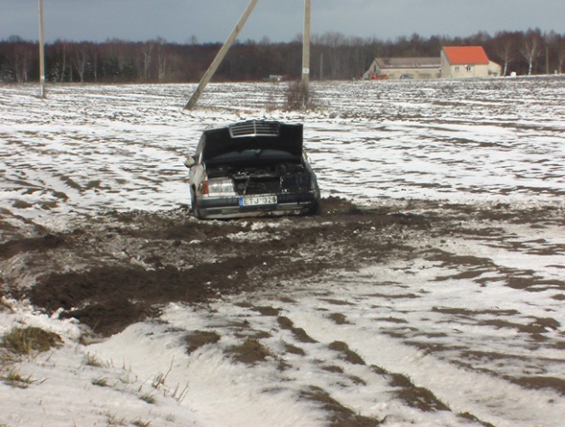 Kelyje Gargždai-Kretinga ant šalikelės sniego paslydo, nuo kelio nuvažiavo ir vertėsi baltos spalvos automobilis "Mercedes Benz 300".