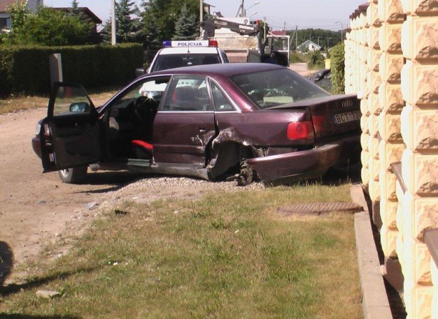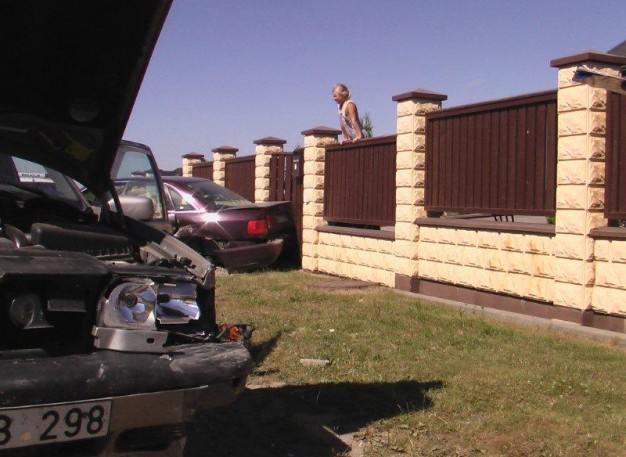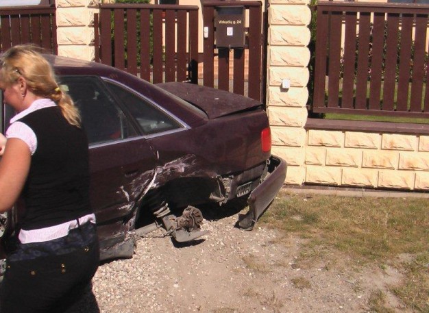 Apie 15 val. žvyrkeliu važiuojančio automobilio "Volvo 850" vairuotojas lygiareikšmėje sankryžoje nepraleido jam iš dešinės pusės judėjusios ir pirmumo teisę turėjusios "Audi A6" ir pylė jai į šoną. Po šio susidūrimo išlakstė "Audi" ratai, o pats automobilis trenkėsi į šalia namo stovinčio namo mūrinę tvorą.