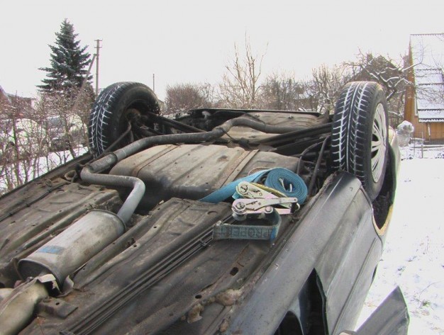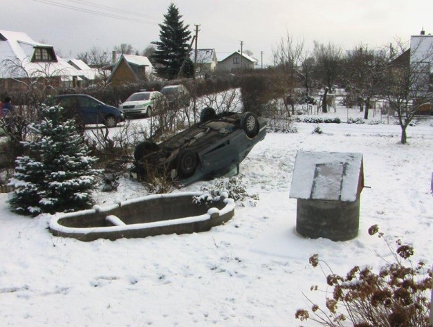 "Ford Mondeo" įkrito į sodo sklypą aukštyn ratais
