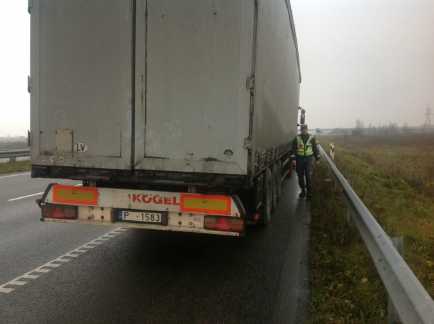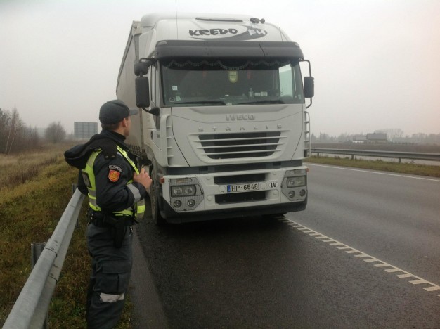 Vilkikas uždarytas į policijos saugomų automobilių stovėjimo aikštelę. Latvis išvežtas blaivytis į policijos komisariatą, o teismo posėdis Gargžduose paskirtas lapkričio 25 d.