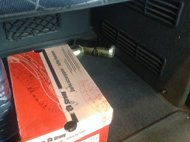 Kur gėrė, neatsimena. Sakė, kad kraupiai skaudančia galva atsibudo degalinėje, kažkur šalia Klaipėdos. Nusipirko lietuviškos spanguolinės degtinės "plokštukę" ir alaus. Išgėręs nutarė pavažiuoti arčiau kelto, tačiau buvo sulaikytas.