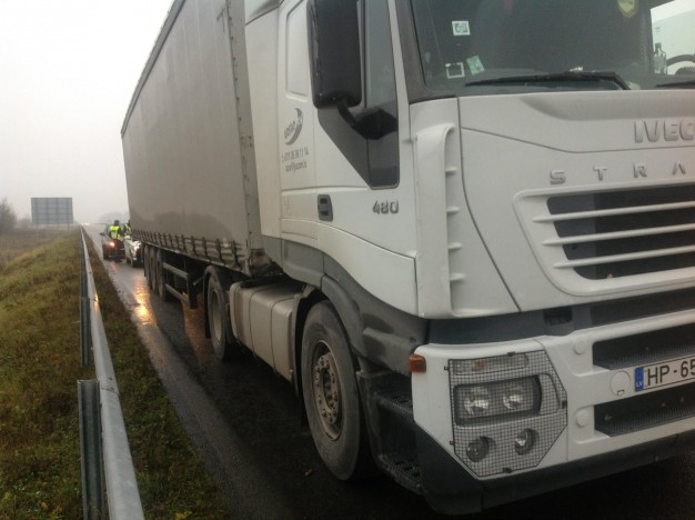 Paskui vilkiką važiavo lengvasis automobilis "Škoda Superb". Jį vairavęs klaipėdietis Algirdas S. prisigretino prie vilkiko ir vairuotojui ženklais parodė, kad šis sustotų. Šis pakluso iš karto. Algirdas įsiropštė į vilkiko kabiną, iš užvedimo spynelės ištraukė raktą ir iškvietė policiją.