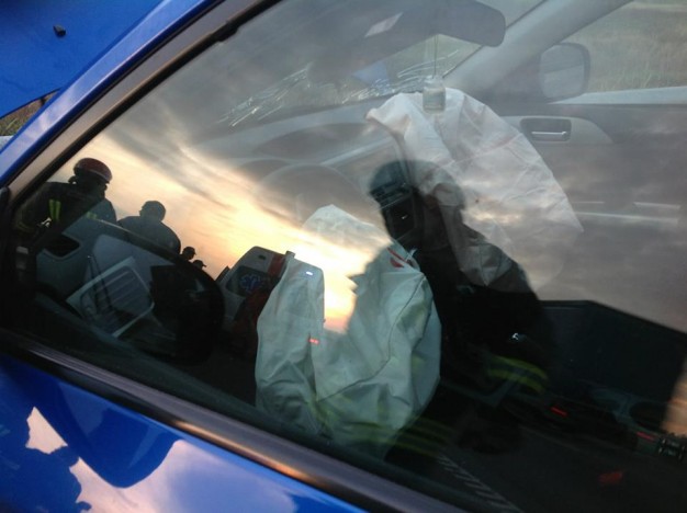 Vilkiko vairuotojas 47 metų Gintaras M. pasakojo, kad važiuodamas Klaipėdos link, per galinio vaizdo veidrodėlį pamatė, kad lengvasis automobilis aplenkė už jo važiuojantį vilkiką ir kažkodėl toliau nevažiavo antra juosta, nelenkė jo vilkiko, o grįždamas į pirmą juostą trenkėsi į jo galinį kairį ratą ir sunkiasvorė mašina tapo nevaldoma.