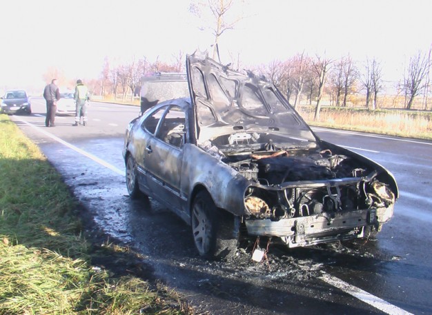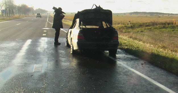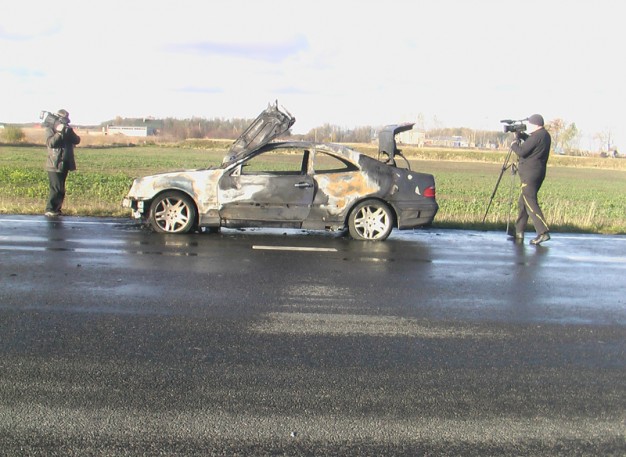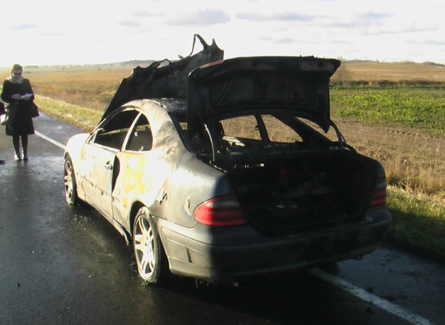 Trečiadienį ryte iš Palangos į Klaipėdą važiuodamas užsidegė ir visiškai sudegė gana retas mūsų kraštuose "Mercedes-Benz".