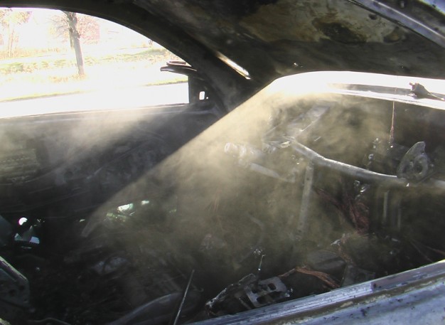 Pasirodo, į darbą uostamiestyje su savo "Mercedes-Benz CLK430" važiavęs vyriškis pastebėjo iš po variklio dangčio rūkstančius dūmus, sustojo ir bandė ugnį gesinti pats, jam padėti sustojo pro šalį važiuojančių automobilių vairuotojai. Tačiau ugnis išsiplėtė per greitai - automobilyje sumontuota dujų įranga.