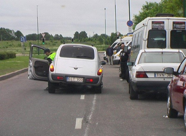Apie tai informuoti policininkai puolė ieškoti šios mašinos. Ją ties Sendvario žiedu sulaikė atskubėjęs garsiojo uostamiesčio Kelių policijos biuro pareigūno Jono Dičiaus ekipažas.