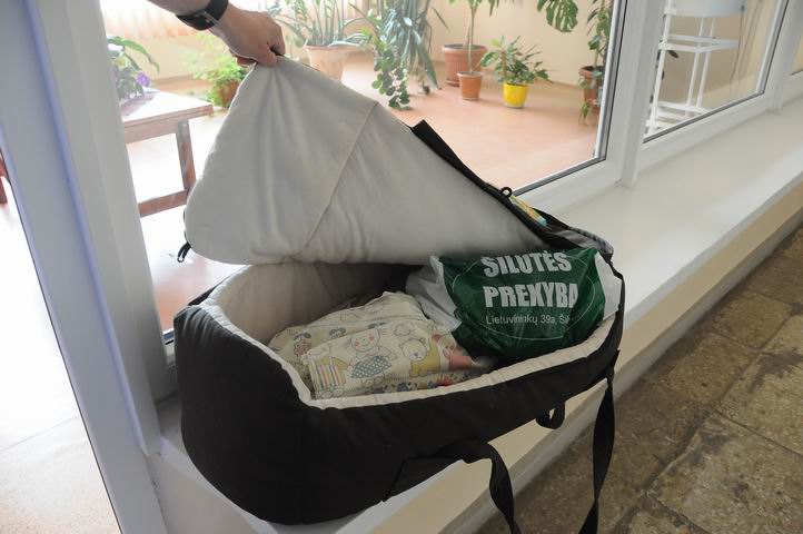 "KRAITELIS". Berniukas buvo paliktas krepšyje, kuriame buvo sauskelnių, mišinuko, rūbelių. Dėmesį atkreipė krepšyje buvęs maišelis su užrašu "Šilutės prekyba" - gali būti, kad vaikelio mama yra iš to krašto. Eimanto CHACHLOVO nuotr.