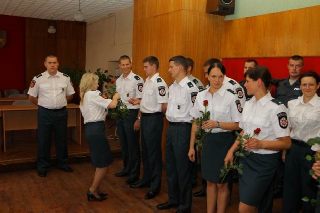 Penkios komisariato darbuotojos gavo pagyrimo raštus. Nusipelniusioms pareigūnėms po oficialių sveikinimų gėles įteikė artimieji.