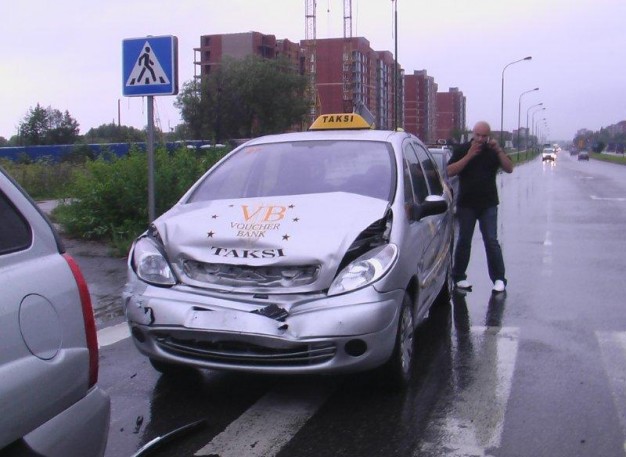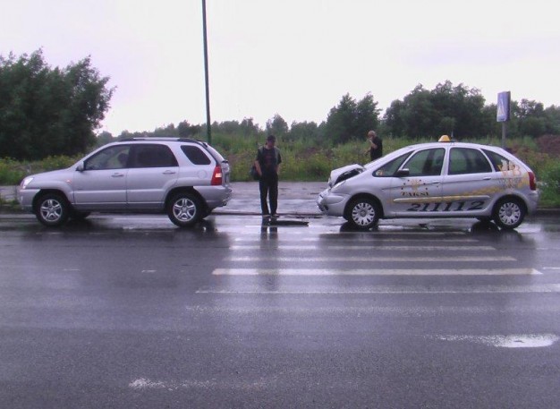 Taikos prospekte ties prekybos centru BIG2 į prieš pėsčiųjų perėją staigiai stabtelėjusį visureigį "Kia Sportage" trenkėsi taksi automobilis "Citroen". PIrmojo automobilio vairuotojas aiškino stabtelėjęs todėl, jog per perėją važiavo dviratininkas.