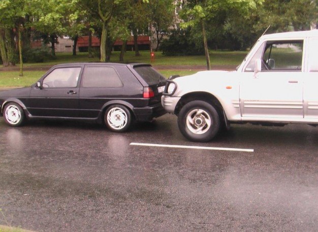 Pliaupiant lietui Gargžduose, Klaipėdos gatvėje automobilis "Audi A6 Avant" trenkėsi į priešais važiavusį "Opel Vectra", o šis - į "Renault Megane Scenic". Opelį vairavo nėščia moteris, bet ji nenukentėjo. Avariją sukėlusio automobilio vairuotojas teigė kliūčių nepastebėjęs dėl to, kad kalbėjosi su keleiviais.