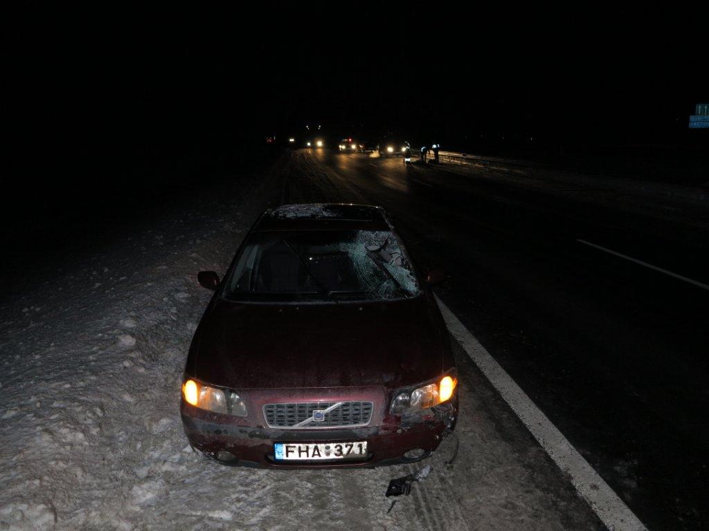 31-erių metų "Volvo S60" vairuotojas Vytautas S. pirma eismo juosta važiavo link Klaipėdos, kai staiga kaire mašinos puse užkliudė kone magistralės viduryje buvusį vyriškį.