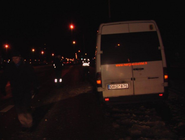 Užkliudyto maršrutinio vairuotojas nebespėjo suvaldyti savo transporto priemonės, ir mikroautobusas trenkėsi į stulpą.