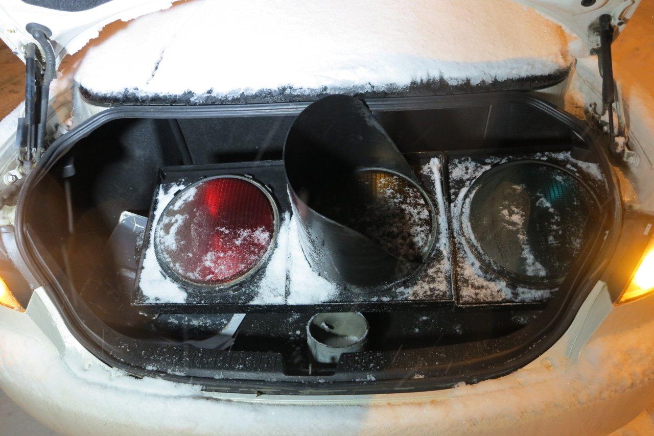 Aliuminis jo stovas tiesiog buvo prispaustas prie kaimyninio šviesoforo. 2009 metais pagamintame visureigyje "iššovė" saugos pagalvės. Vairuotojas buvo blaivus ir per avariją nenukentėjo