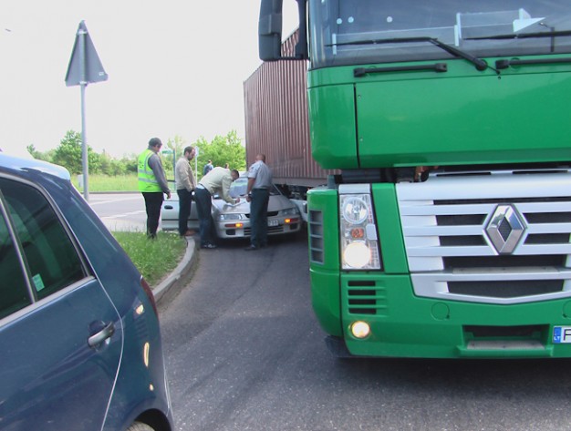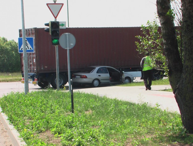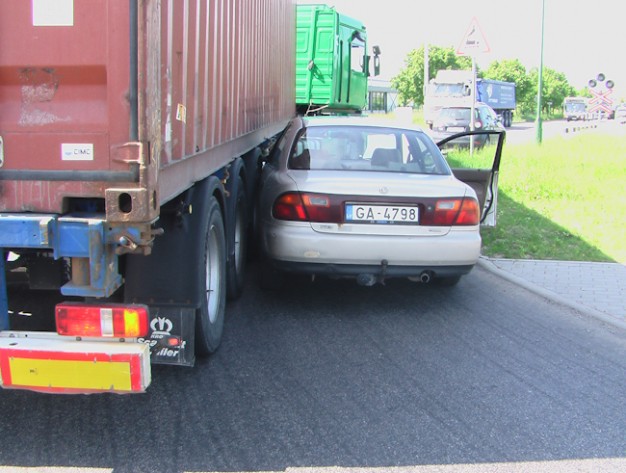 Nors avarijos kaltininkas - vilkiko vairuotojas, dėl menkų apgadinimų ir latvio nenoro eikvoti brangų laiką eismo dalyviai išsiskirstė neturėdami priekaištų vienas kitam.