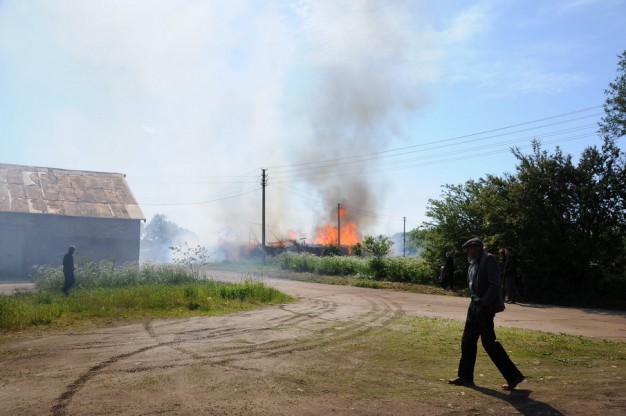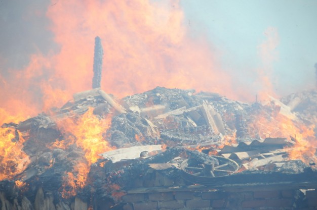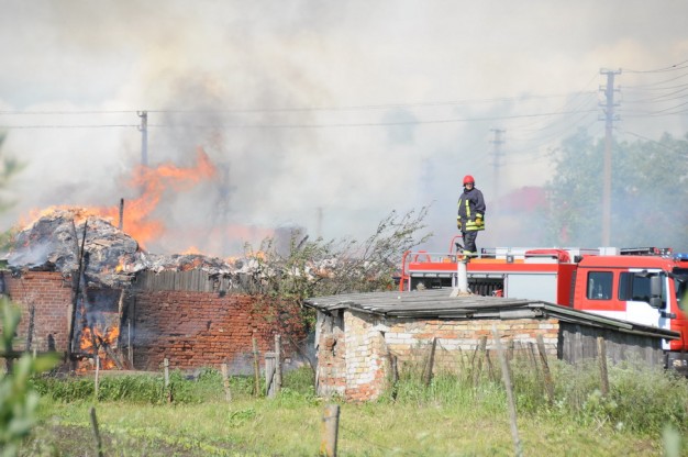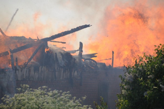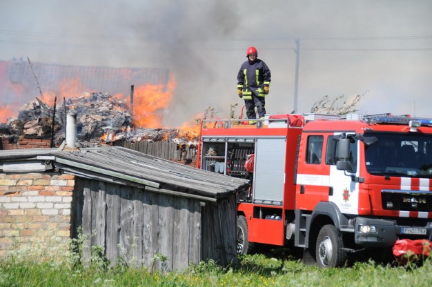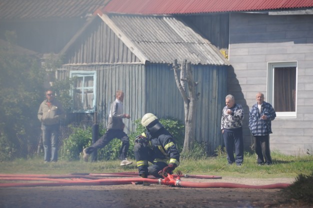 Deja, dėl stipraus vėjo ugniagesiams sustabdyti liepsnų plitimo nepavyko, ir prieš 16 val. ugnis persimetė ant gyvenamo medinio namo, stovėjusio nuo degančios ūkinio pastato gana toli - per 100 metrų.