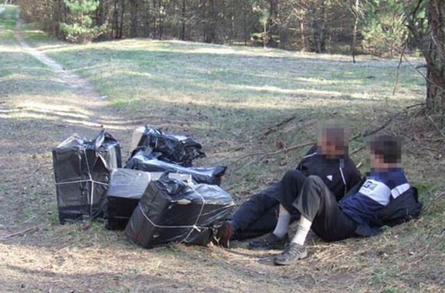 Pasieniečiai sulaikė tris cigarečių kontrabandininkus, gabenusius puspenkto tūkstančio pakelių baltarusiškų rūkalų.