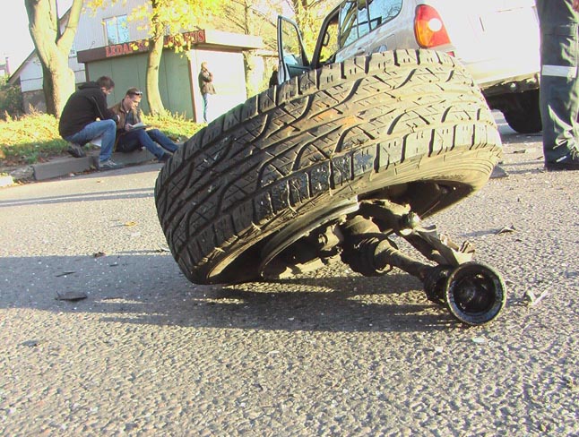 Smūgio būta tokio stipraus, kad visureigis neteko priekinio rato, o ševroleto salone iššovė dvi saugos pagalvės.