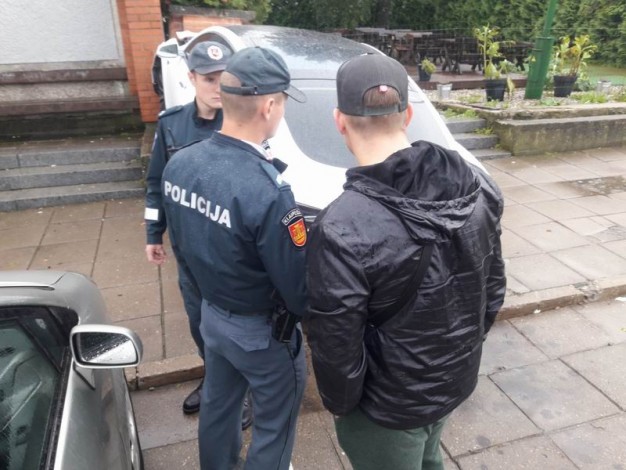 Automobilis peršoko per bordiūrą, sutraiškė šiukšlių dėžę ir rėžėsi į mūrinę sieną.