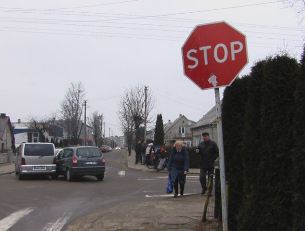 „Mercedes Benz“ mikroautobuso vairuotojas pasakojo, jog važiuodamas skolinta mašina sustojo prie STOP ženklo, tačiau neįvertinęs saugaus atstumo rizikavo įveikti sankryžą.