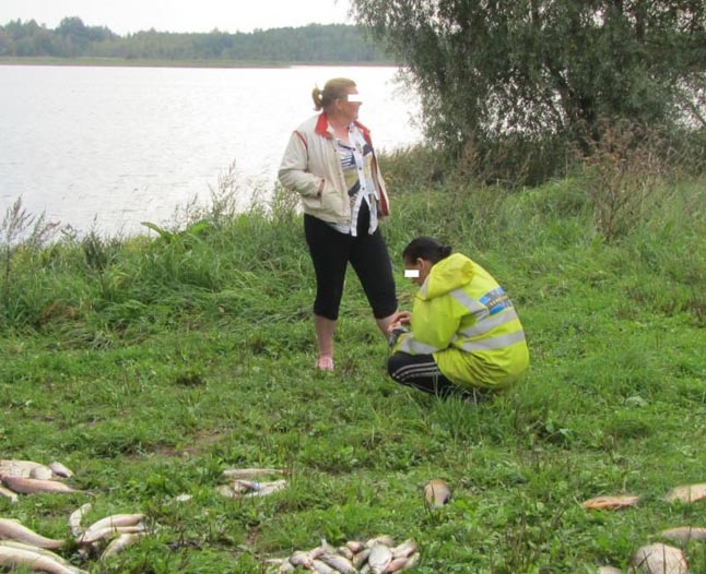 Jo įspėtos moterys skubiai išvertė iš valties tinklus į ežerą, kad paslėptų neteisėtos žvejybos pėdsakus. Tačiau aplinkosaugininkai tinklus surado ir ištraukė į krantą. Paaiškėjo, kad neteisėtai buvo sužvejota 12 starkių, 5 karosai, 23 plakiai, 8 karšiai, lynas ir kt. žuvų.