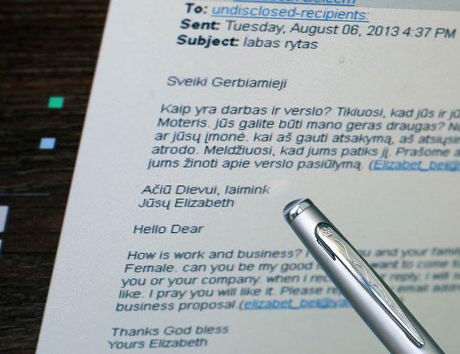 "Patikėję", kad tokių negandų bei kaitrios Vakarų Afrikos saulės iškankinta mergina pateko į bėdą, sutikome jai padėti. Elizabeta prašė paskolinti 750 eurų, kad ji, atsidariusi sąskaitą, galėtų atsiimti tėvo palikimą, kurį neva sudaro beveik 2 milijonai dolerių.