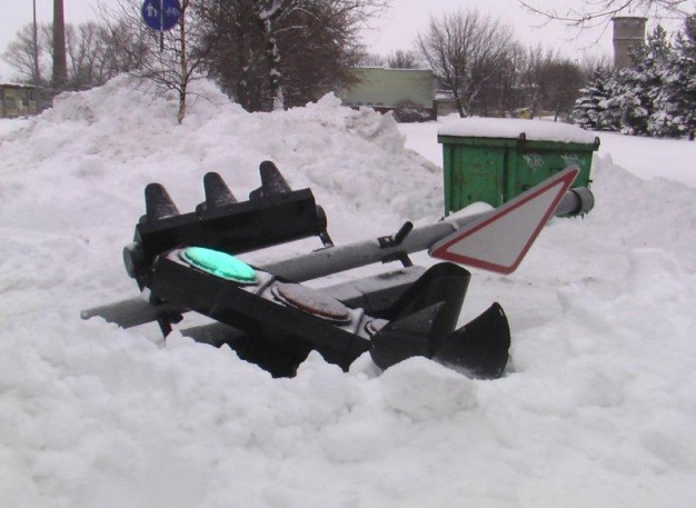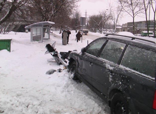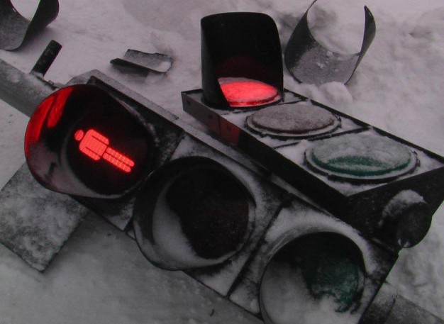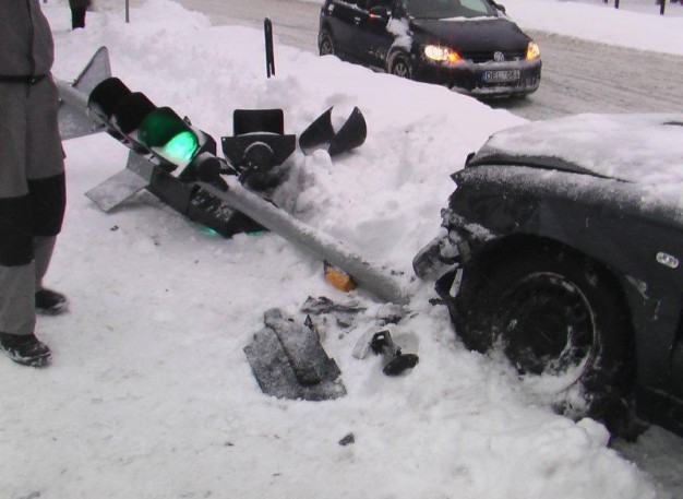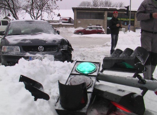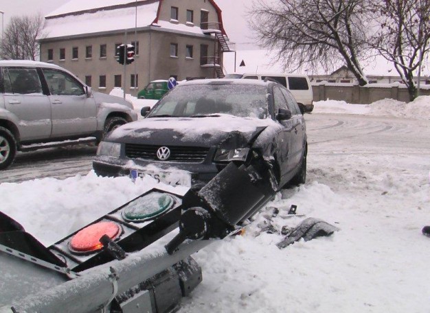 Tiesa, perverstas ir į šipulius subyrėjęs šviesoforas veikti nenustojo ir toliau reguliavo eismą, tačiau jo signalai rodė tik į dangų arba atsispindėjo sniege.