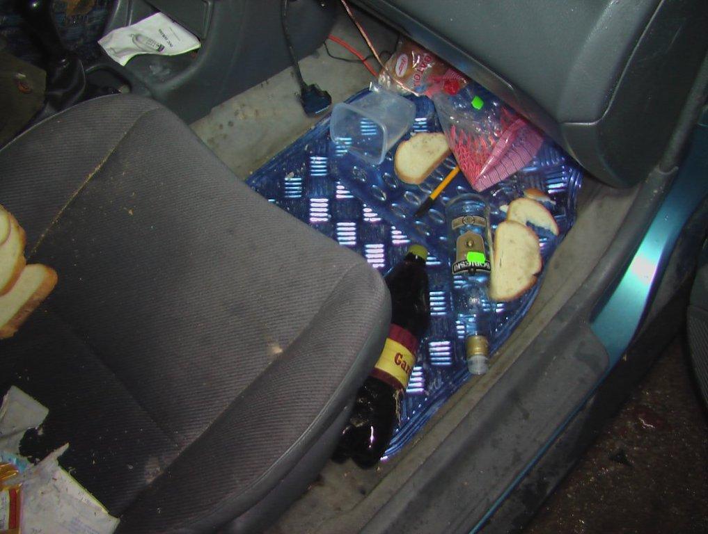 Automobilyje mėtėsi butelis degtinės ir duonos likučiai. Rolandas tikrintis girtumą atsisakė ir teigė, kad visada važiuoja girtas ir į alkotesterį niekada nepučia.Tokia neva dabar yra mada...