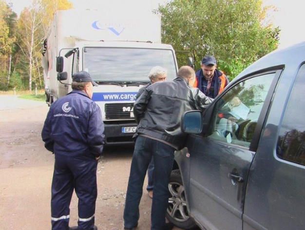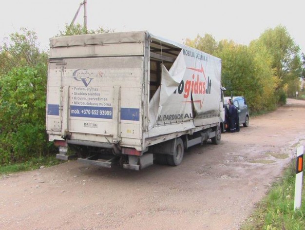 Šilumvežis vos kepštelėjo sunkvežimio galą, tačiau to užteko, kad iš puspriekabės būtų išsviestos dvi stirtos knygų suomių kalba, ką tik išspausdintų spaustuvėje Gargžduose.