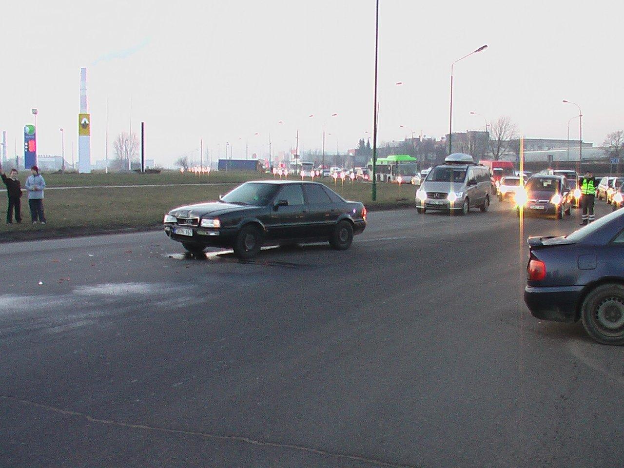 Jaunuolis važiavo žiedu, kuomet moteriškė išlindo iš šalutinio kelio. Automobiliai susidūrė ir moters vairuojama "Audi" atsidūrė žiedo žolyne.