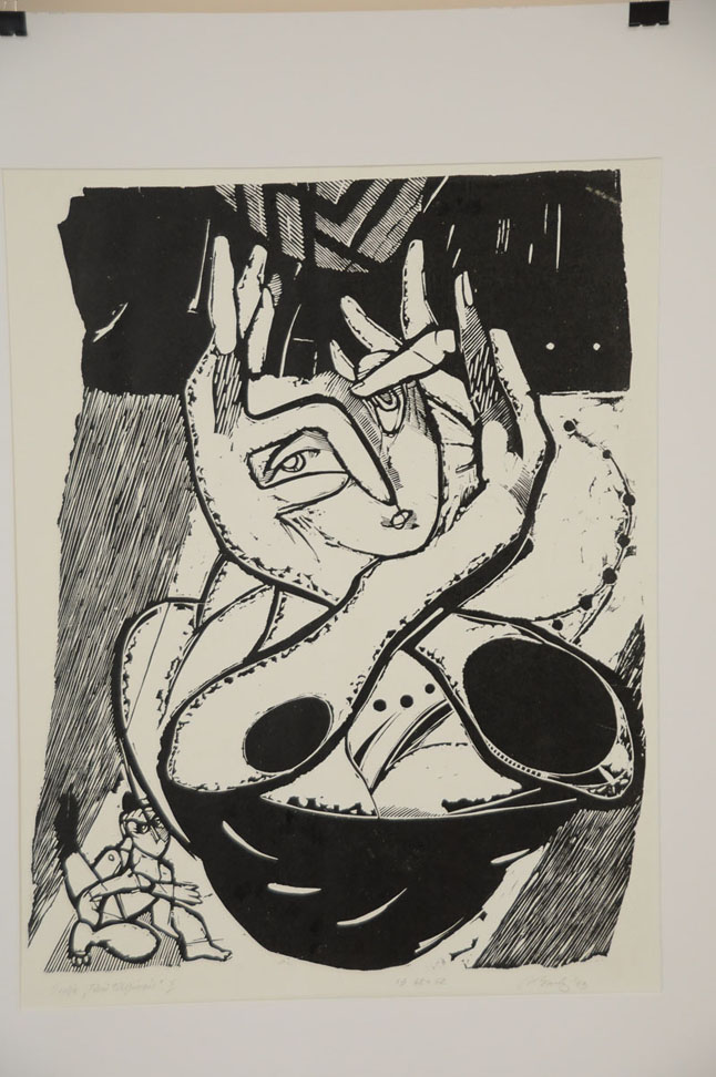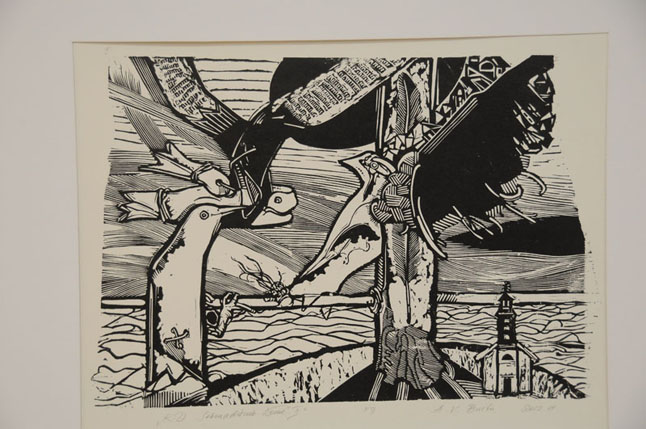 "Pažymėčiau, jog grafiko darbai yra, kaip jis pasakytų, ne nuo žaidimų smėlio dėžėje laikų. 2012 metais menininkas prisėdo prie senų linoleumo atraižų, ir nuo lapkričio iki gegužės mėnesio gimė 28 lino raižiniai. Parodoje galime matyti autorinius atspaudus, kurie nėra po stiklu. Nėra Donelaičio portretų, tekstų, datų - tik impresijos, autoriaus išreikšti istorinio paveldo išgyvenimai, praeities tema", - sakė menotyrininkė Kristina Jokubavičienė.