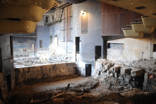 Mat dalis teatro pastatyta ant buvusios Danės upės senvagės, todėl toje vietoje, kur buvo pagrindinė scena, reikia įrengti polius. Statybininkams sunkumų kelia atsivėręs šaltinis, tenka nuolat pumpuoti vandenį.