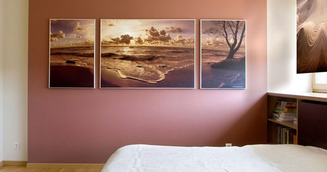 Sakoma, kad labai svarbu nuotraukų turinį derinti su patalpa, kurioje jos kabės. Kaip antai daržovės ar vaisiai - virtuvėje, aktai - miegamajame, šeimos nuotraukos - svetainėje.