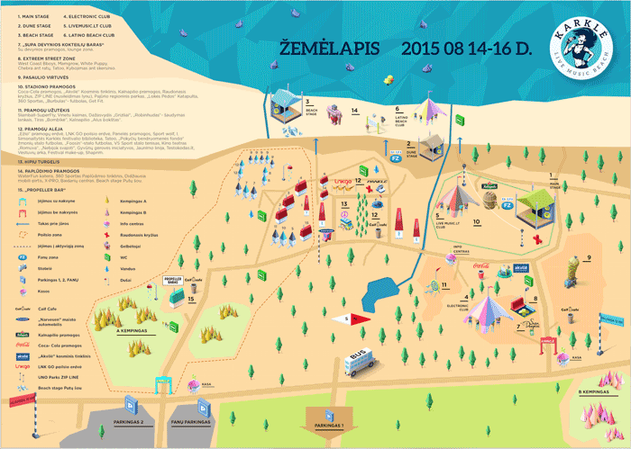 Jau ateinantį penktadienį Lietuvos pajūryje, Karklėje, startuoja didžiausias šalyje muzikos, menų ir pramogų festivalis „Karklė 2015 Live Music Beach“. Apibūdinimas „didžiausias“ tinka kalbant tiek apie trijų dienų fiestos muzikinę bei pramogų programą, tiek apie renginio teritoriją, todėl organizatoriai pasirūpino, kad festivalio dalyviai lengvai susiorientuotų jo erdvėje ir jau dabar galėtų sudaryti savo „festivalinį maršrutą“.