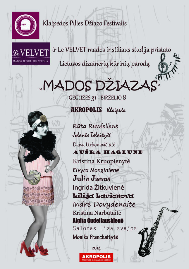 Unikalią parodą, kurios iniciatoriai yra Klaipėdos pilies džiazo festivalio siela Inga Grubliauskienė ir „Le Velvet“ mados ir stiliaus studija, nuo gegužės 31 iki birželio 8 dienos bus galima apžiūrėti Klaipėdos prekybos ir pramogų centre „Akropolis“.