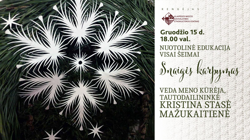 Gamtoje susidarančios snaigės – ledo kristaliukai – yra šešiabriaunės, šešiakampės, visos skirtingų raštų. Būtent šešiakampę snaigę ir mokysimės kirpti edukacinio renginio metu. Karpant snaigę, labai svarbus momentas yra popieriaus lapo sulankstymas. Nuo to priklauso, kiek kampų turės karpomas kūrinys. Toliau rūpinamės rašto komponavimu, tada jau kerpame. Iškarpytomis snaigėmis galime papuošti langus, eglutę ar pušies šaką šventėms, karpinys gali tapti nuostabia servetėle, stalo serviravimo puošmena.