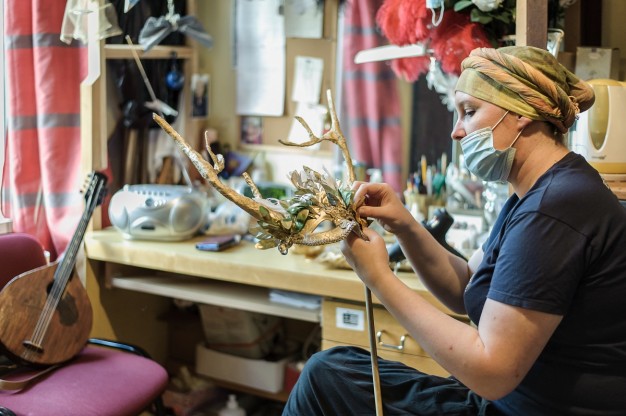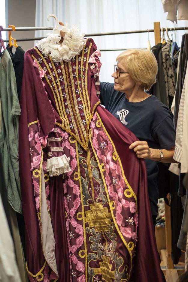 Ne kiekviena dama sugebėtų nepasimesti tarp gausybės batų, rūbų ir aksesuarų. Visa tai laiku paruošti, išlyginti ir  pateikti naujam spektakliui sugeba kostiumininkių komanda...