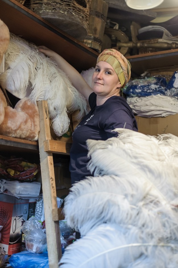 Mūsų teatro rekvizito karalienė yra Ekaterina Novikienė. Rekvizito sandėliavimo subtilybes žino tik ji. Ji kaip burtininkė, kuri iš nedidelės skrybėlės be perstojo traukia protu nesuvokiamo dydžio daiktus. Apsilankius jos nedidelėse valdose, kur rekvizitas kruopščiai sandėliuojamas mistinio algoritmo būdu,  susimąstai, kur, po galais, ji viską sutalpina.