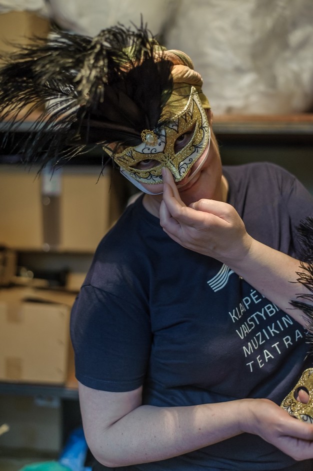 Manau, ne vieną moterį tektų jėga išprašyti iš mūsų kostiumininkių rezidencijos, kuri prilygsta didžiausiai ir prabangiausiai rūbų spintai Klaipėdos mieste (juokiasi). Ten ir prašmatnios rūmų suknelės, ir įvairių laikotarpių seksualūs sijonėliai, o dar batų ir skrybėlių gausa... Viskas kvepia švara, išlyginta, sukabinta arba sudėta į lentynas. Šios rūbų spintos valdovės – teatro kostiumininkės: Paulina Arlauskienė, Reda Gudinaitė, Eglė Vareikaitė. Jos pasirūpina, kad kiekviename spektaklyje artistai būtų nepriekaištingai aprengti ir kvepiantys švara.