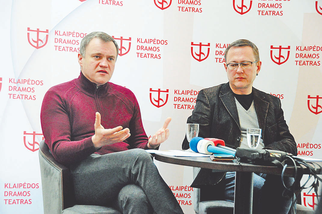 PASTEBĖJIMAI. Klaipėdos dramos teatro vadovas Tomas Juočys ir literatūrinės dalies vedėjas Gintaras Grajauskas pastebi tendencijas, kad Lietuvos kultūros taryba finansuoja tik garsias pavardes arba tuos festivalius, kurie nesudaro konkurencijos sostinei. Eimanto Chachlovo nuotr.