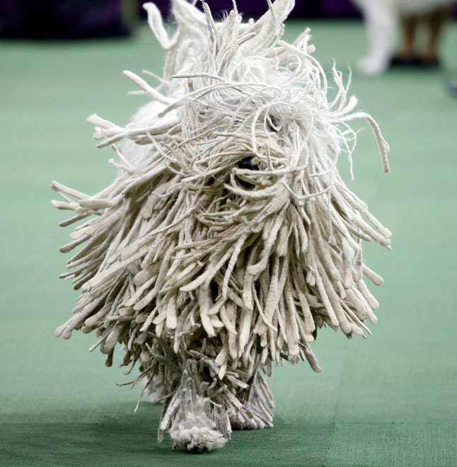 KOMONDORAS, arba vengrų aviganis. Pasak vengrų legendos, ši veislė atsirado iš vilko ir avies meilės. Akivaizdu, kad tokie "dredai" reikalauja daug priežiūros.