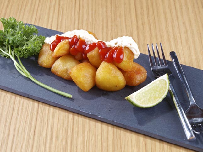 Vienas paprasčiausių ir pigiausių užkandžių - "Patatas bravas": tai keptos bulvės, viduje - minkštos, iš išorės - traškios. Patiekiamos su pomidorų ir aitriųjų pipirų padažu.