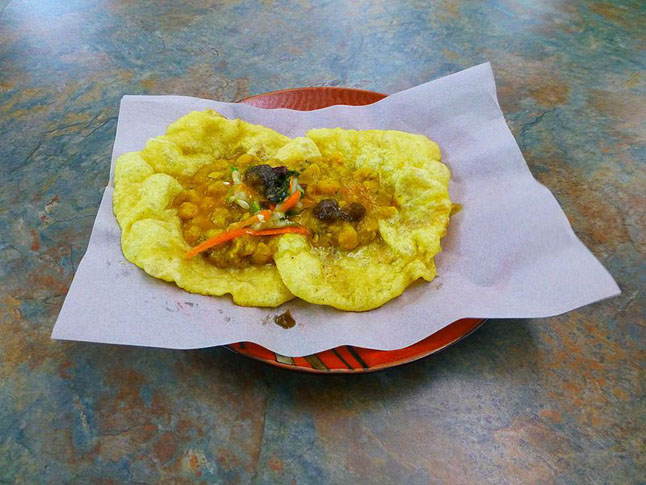 Bandelė, vištiena, bulvės. Gatvės maistas Trinidade paprastas ir sotus. Vienas populiariausių ir pigiausių patiekalų vadinamas "Doubles" - tai šviežia bandelė, įdaryta vištiena su kariu ir padažu.