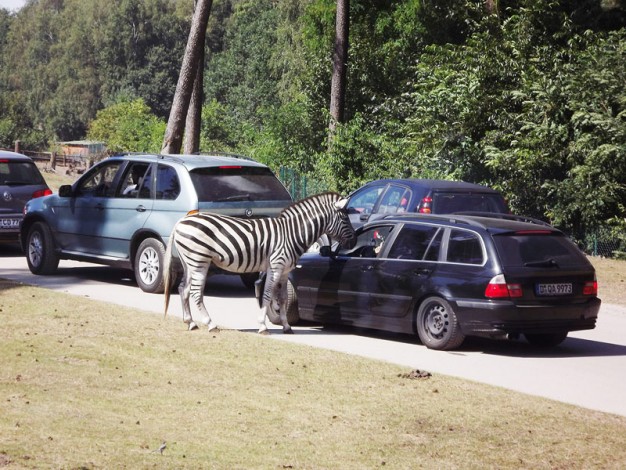 Prie automobiliais atvykusių ir savarankiškai parką apžiūrinčių lankytojų mašinų slampinėjo zebrai. Kišdamos snukučius pro automobilių langus dairėsi smalsuolės žirafos. Parko lankytojai gyvūnams kartais atveža skanėstų. Tad drąsesni ir apsukresni gyvūnai taip "susišaudo" ėdesio.