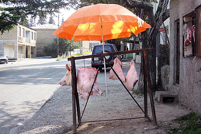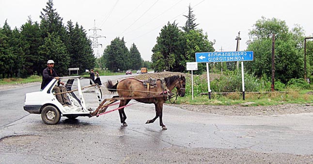 KARIETA. Tokios "karietos" Gruzijoje - įprastas vaizdas. TINKLAI. Elektros tinklų linijos gruzinų gyvenvietėse specialistams iš Lietuvos priminė raizgalynę, o ne elektros tiekimo linijas. TARNYBA. Kachetijos regiono skirstomųjų tinklų avarinė tarnybos brigada į darbą leidžiasi tokiu transportu. PREKYBA. Gatvės prekyba mėsa Kachetijos miestelio gatvelėje. ROJUS. Gruzinai svetimšaliams apie savo šalį kalba tostais, kurių viename sakoma, kad jų šalis - Dievo rojus žemėje. Davido Garedzo vienuolynas.