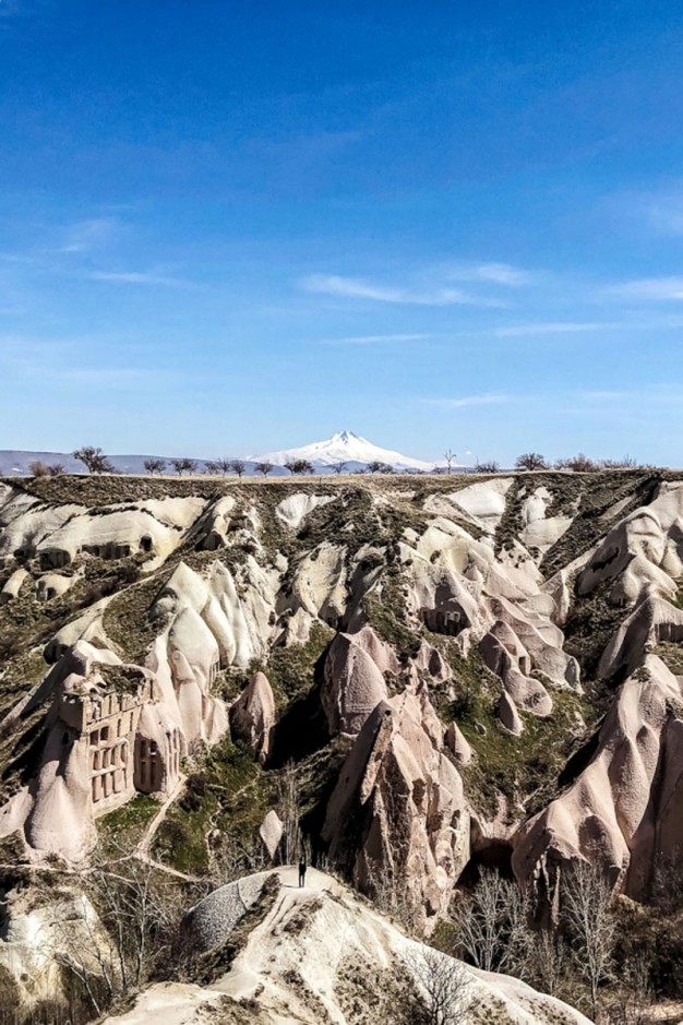 Nuostabus dalykas, kad beveik iš visų Kapadokijos vietų tolumoje matosi ir sniego viršukalne pasipuošęs Erciyes kalnas, kviečiantis slidinėti saulės atokaitoje.