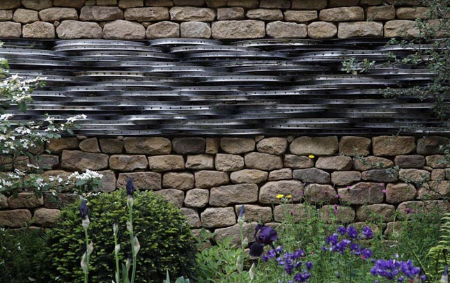 MODERNIOJI KLASIKA. Dviračių rėmai sodą juosiančioje sienoje. Šiųmetė pasaulinė kraštovaizdžio paroda Čelsyje parodė, jog viena iš pagrindinių šiuolaikinio sodo tendencijų yra modernioji klasika.
