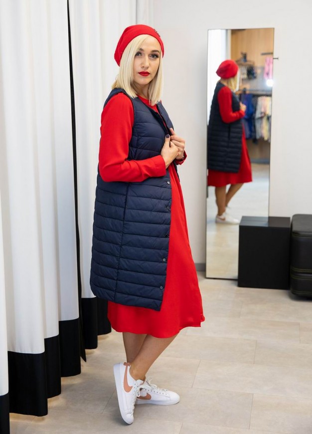 Žmogus iš šalies, dirbantis su mada, gali pasiūlyti netikėtai vizualiai ir psichologiškai taiklius sprendimus, apie kuriuos pati net nebūtum pagalvojusi. Štai, pavyzdžiui, toks atsarginis derinys ir yra raudona suknelė su raudona kepuraite – jautiesi patogiai, o atrodai – stilingai“, – pastebi viena ryškiausių Lietuvos pramogų pasaulio žvaigždžių.