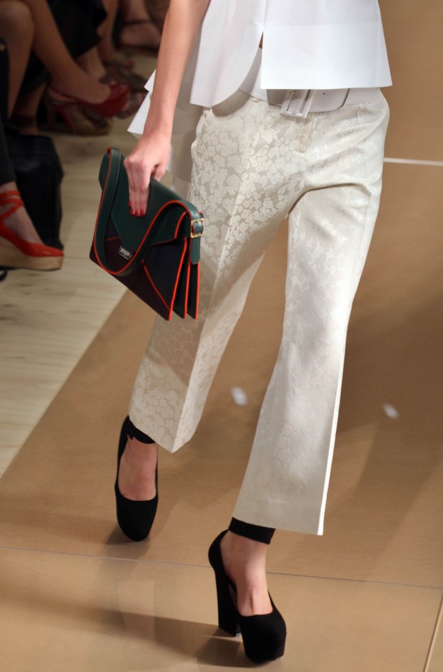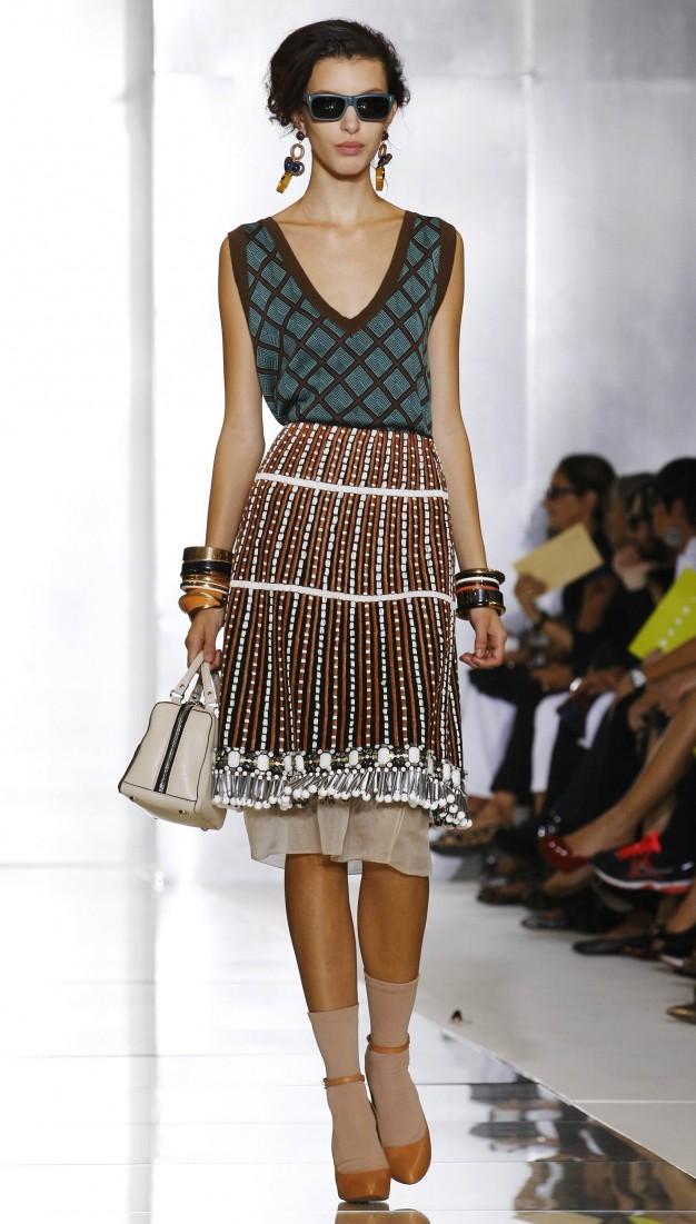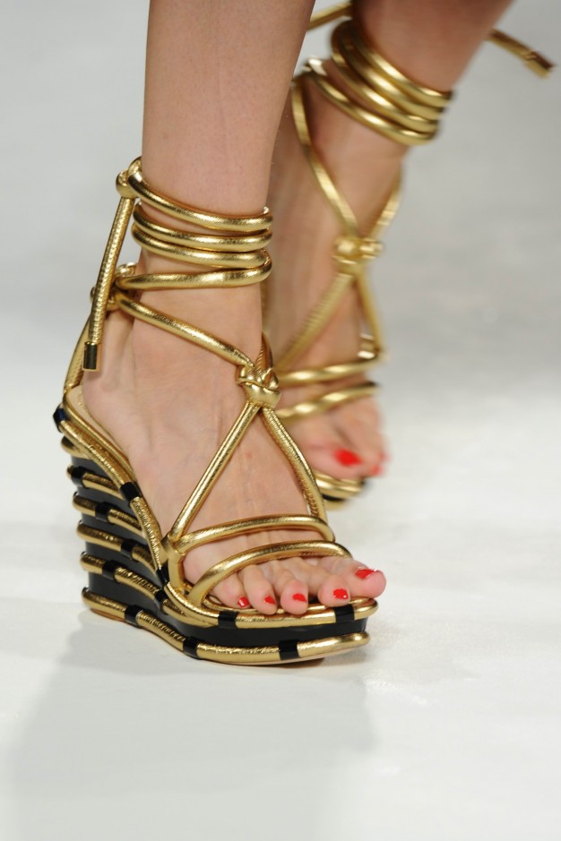 Papuošalai. Praėjusį sezoną dominavo maksimalizmas - jis išlieka ir 2012 m. pavasarį. Didelės sagės gali papuošti rankines, šalikus ir megztukus. Plačios masyvios apyrankės pabrėš rankos grakštumą. Šį pavasarį rinkitės apyrankes su pakabučiais. Populiarumo viršūnėje - auksinė grandinėlė su daržovių arba lašo formos pakabučiu, miniatiūriniais spalvingais karoliukais. Madingi gėlių formos žiedai. Ypač populiarūs raudonojo aukso papuošalai.