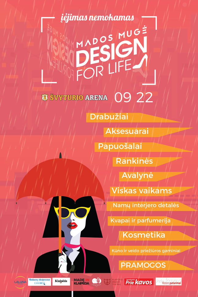 Šeštadienį nuo 10 iki 17 valandos vyksianti mados ir grožio mugė ,,Design for life’’ po vienu stogu sujungs per 150 mados ir grožio kūrėjų, kurie į ,,Švyturio areną’’ atvyks ne tik iš Lietuvos, bet ir Latvijos. Kosmetika, grožio priemonės, drabužiai, aksesurai, papuošalai, rankinės, avalynė, vaikiški ir vyriški drabužiai, interjero detalės – tokia gausa pasiūlymų pasitiks mugės lankytojus.